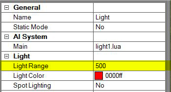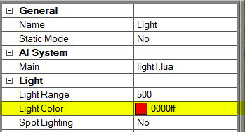 The light color (or temporature) can be controled by the properties panel and via LUA. Despite being provided with pre-colored lights, you can change their color at anytime even if you happened to have placed a "Blue Light" on your map, you can easily change its color with the following methods: