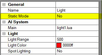 By default, all lights' static mode option are set to No. Setting this to Yes will make the light static. This means all static lights are dynamic by default when you first place them in the map.